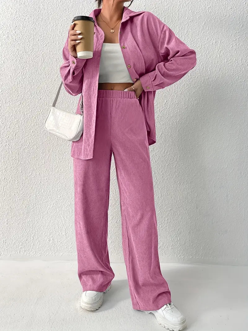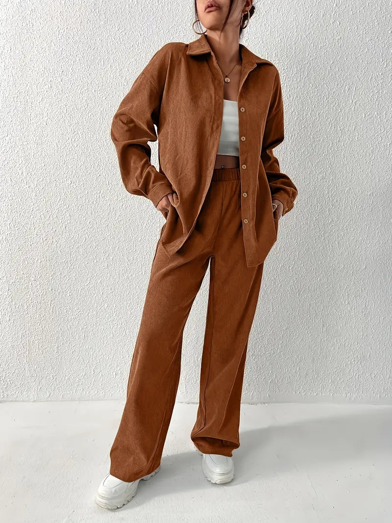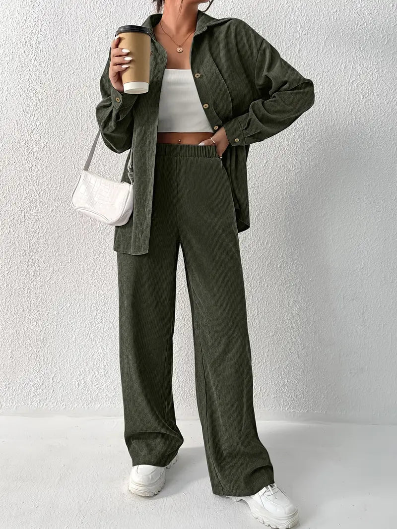 Whether you're leisurely strolling through the city or enjoying a beach outing, the Sprytze™ Casual Corduroy Two-piece Set ensures you're always impeccably dressed in women's clothing that reflects both elegance and comfort.
